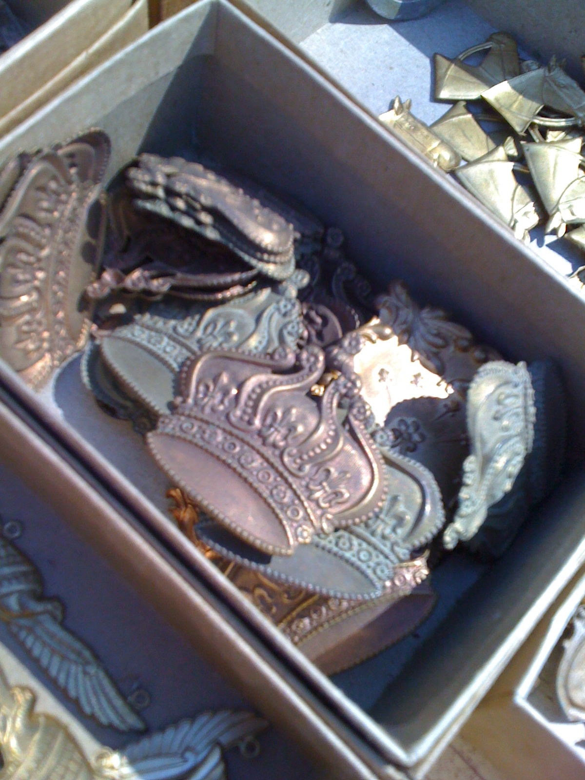 I forgot to share these crosses with you the other day, they are from the same vendor at the flea market. Great detail and I think they are made from some type of pot metal as they have a softness to them.